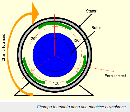 Dès la mise sous tension du moteur, un champ tournant prend naissance dans les enroulements statoriques.