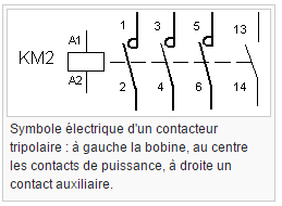 Symbole d'un contacteur tripolaire avec un contact auxiliaire à normalement ouvert (NO)