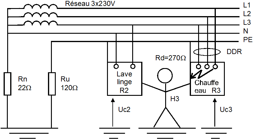 2.3 Quel doit être la sensibilité maximum du DDR dans le cas où ce défaut apparaît dans un local sec sec (UL=50V) ?
