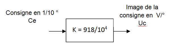Après calcul le système de traitement renvoie une consigne exprimée en en dixième de degré. La fonction de transfert associée à la fonction "adapter la consigne" est la suivante :