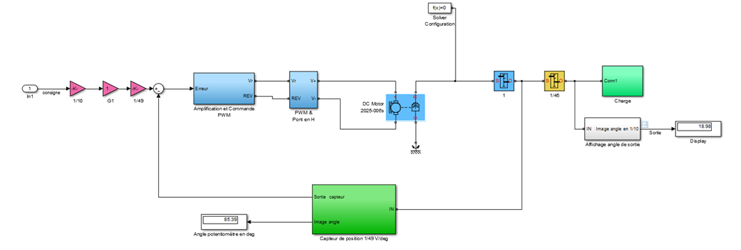 Sous Matlab ouvrir le modèle IDS_model_TP02. Le modèle de l'asservissement se présente sous la forme suivante :