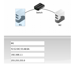 Créer 2 ordinateurs (portable ou de bureau, peu importe) nommés M1 et M2, un Switch et relier le tout par un câble.
