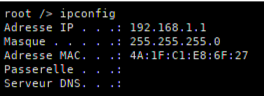 ipconfig : elle permet de connaître l'adresse IP de la machine.