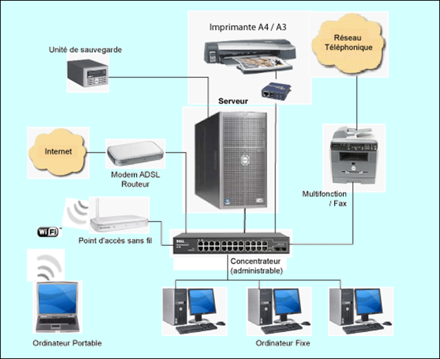 Un réseau informatique permet de relier, physiquement ou via les ondes radio, un ensemble de serveurs et de postes de travail dans le but d'échanger des données et des informations de façon sécurisée.