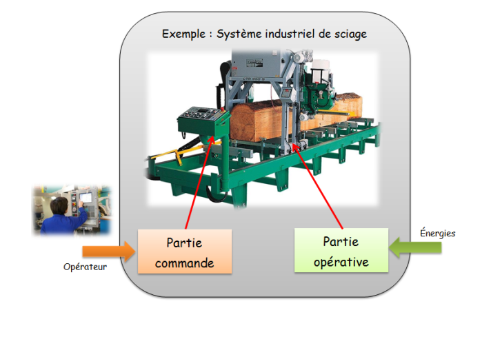 - une partie opérative, qui effectue les actions nécessaires à la réalisation du processus de fabrication à partir des ordres de la partie commande;