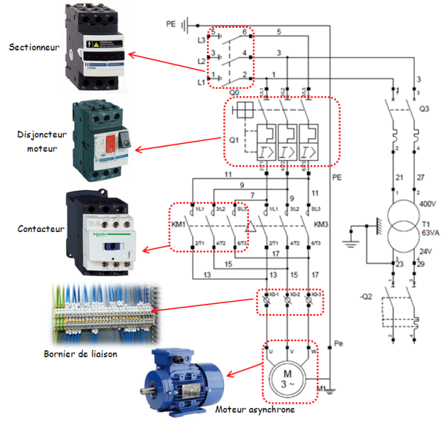- L'établissement ou la coupure de l'alimentation des actionneurs (Moteurs, Etc...) sont réalisées par les contacteurs