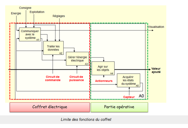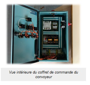 Le coffret de commande de notre convoyeur est en logique câblée permettant la commande de la motorisation (ensemble de contacteur moteur et auxiliaire).