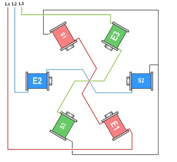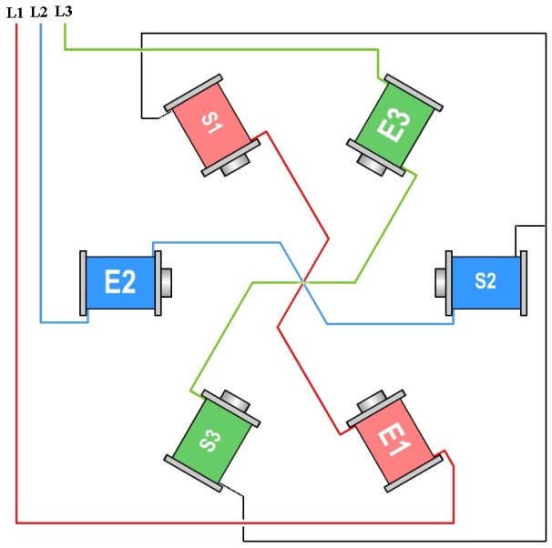 - Dans la réalité, le stator d'un tel moteur n'existe pas car pour obtenir un fonctionnement normal et un bon rendement, il doit comporter 6 bobines.