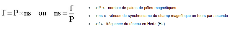 La vitesse de synchronisme "ns" d'un moteur dépend de son nombre de pôles.