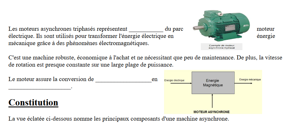 Regarder ce cours sur le moteur asynchrone et compléter le document suivant: