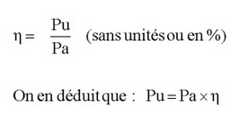 - Entre ces deux puissances il existe des pertes et ces pertes sont quantifiées par le rendement "η" (lettre grecque "éta")